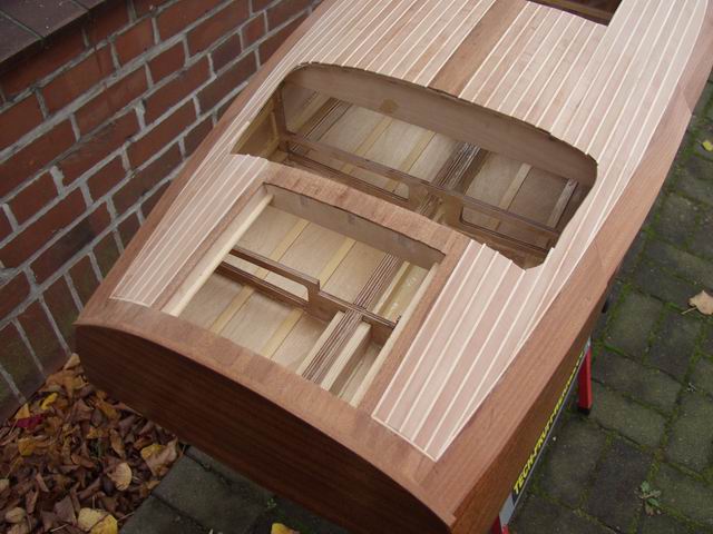 Aufbau von Spantgerüst und Unterbeplankung erfolgen “ über Kopf ” auf der Helling.